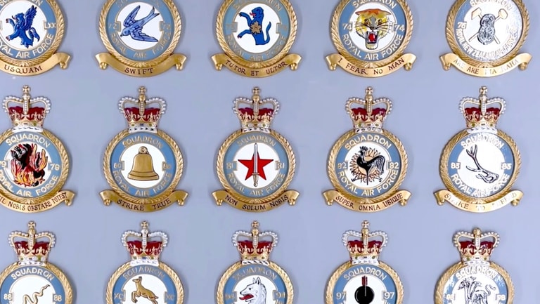 Turn left from the letterbox and you will see the wall of squadron badges.